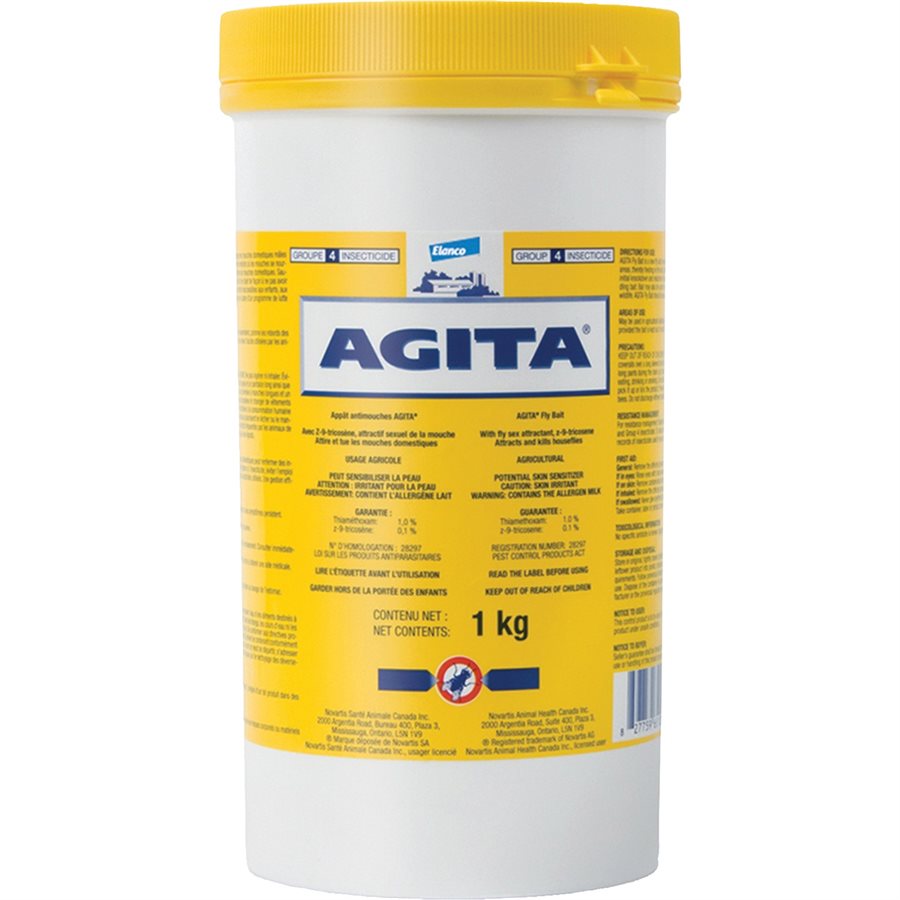 AGITA is used as a scatter bait for the control of house flies on farms. Scatter AGITA very lightly using 200 g per 100 m2 of ground surface on areas frequented by flies, e.g., pathways, windowsills, pen partitions. If AGITA cannot be scattered on to the floor directly, use devices (shallow plates, containers) to apply it in. 1.0% Thiamethoxam /0.1% z-9-tricosene. GROUP 4 INSECTICIDE.