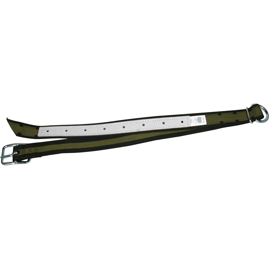 Black neck strap with oval link and D-ring. 52" in length and 1.5" in width.
