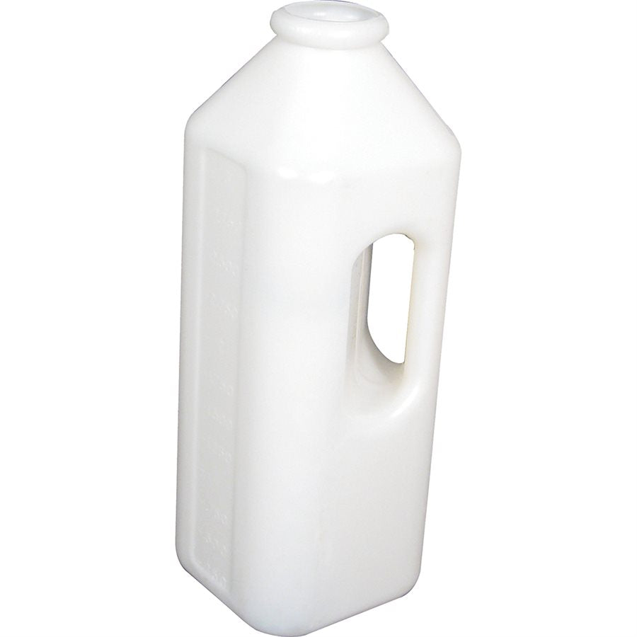 These standardized bottles are designed for use with most existing calf bottle holders, and they include easy-to-read, graduated fill markings. The bottle has an integrated handle for more convenient transport from the location of filling to where the calf is to be fed.