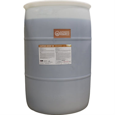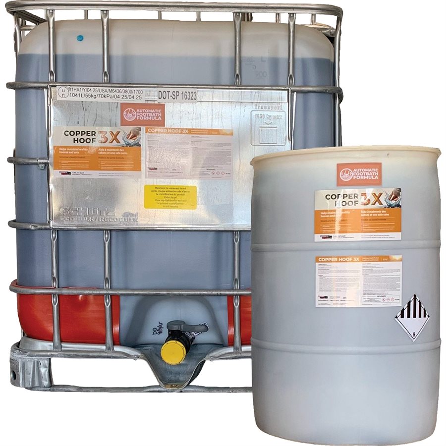 Copper Hoof 3X is a registered Veterinary Health Product (VHP) approved for use in a foot bath to help maintain healthy hooves and soles. This formula has been optimized for Automated Foot Bath systems. Not for use in the MS AutoHoofClean systems. Using copper in a foot bath is common. Adding acid to the copper makes the copper more affective. Copper Hoof 3X uses a proprietary mix of acids that provide PH stability for a longer period than most acidified coppers on the market. Copper Hoof 3X has a buffer in the acid which provides a safety measure to prevent the foot bath from becoming too acidic. Copper Hoof 3X has the added feature of the gel which increases the contact time on the hoof. Use 8 to 10 litres of Copper Hoof 3Xin 100 litres of water. Copper Hoof 3X may be used in automated footbath systems or may be manually diluted. Use outside milking parlours. Change footbath after each use or after a maximum of 500 cow’s pass. Use regularly from 1 to 3 times a week (example: 2 times a day for 2 or 3 days) and non-consecutive days (example: Monday, Wednesday, Friday). Keep the pH between 3.0 and 4.2 for optimal results. Keep product from freezing. Given the copper content product is not intended for use with Sheep.