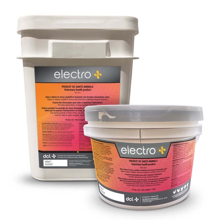 Electro + is a water-soluble supplement of electrolyte and vitamin used for swine and poultry during stress periods. Examples include transportation, co-mingling/mixing, feed transition, heat stress, or farrowing. The recommended dosage is 500g per 1000L of drinking water for a period of 3 to 7 days.