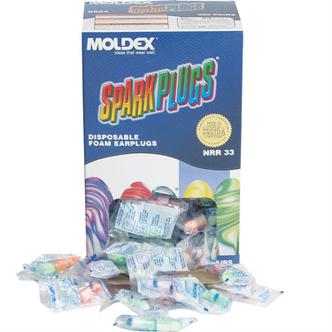 Spark Plug Foam Ear Plugs are brightly coloured and un-corded.