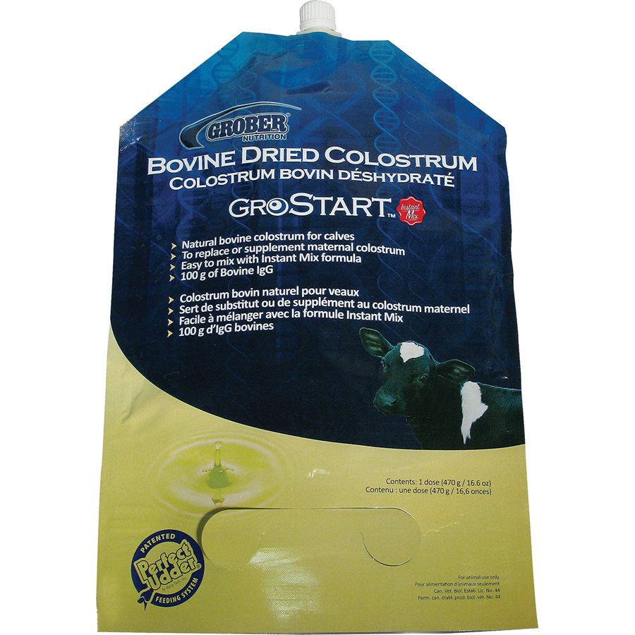 GroStart can be used to replace or supplement maternal colostrum as an aid in the treatment of Failure of Passive Transfer (FPT) in newborn calves. One pouch provides 100 grams of Bovine igG. Mix and feed all from the same bag using tube feeder or nipple attachment options.