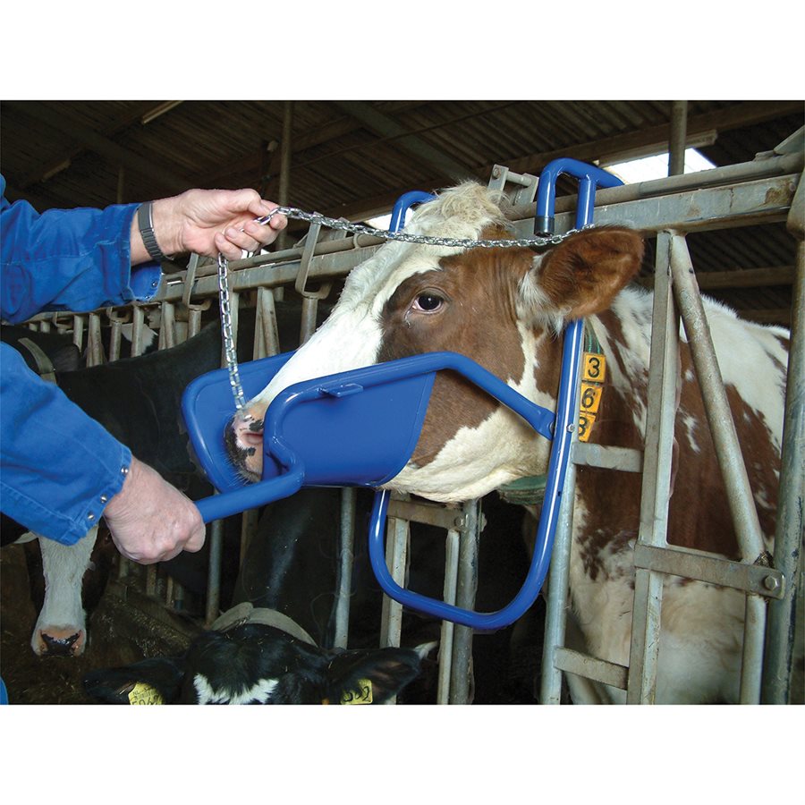 For use with self-locking headgates. Immobilizes the cow's head in one single movement. Easily and safely administer treatments to cow's head. Safety catches allow you to easily release the cow. Constructed for one person to operate.