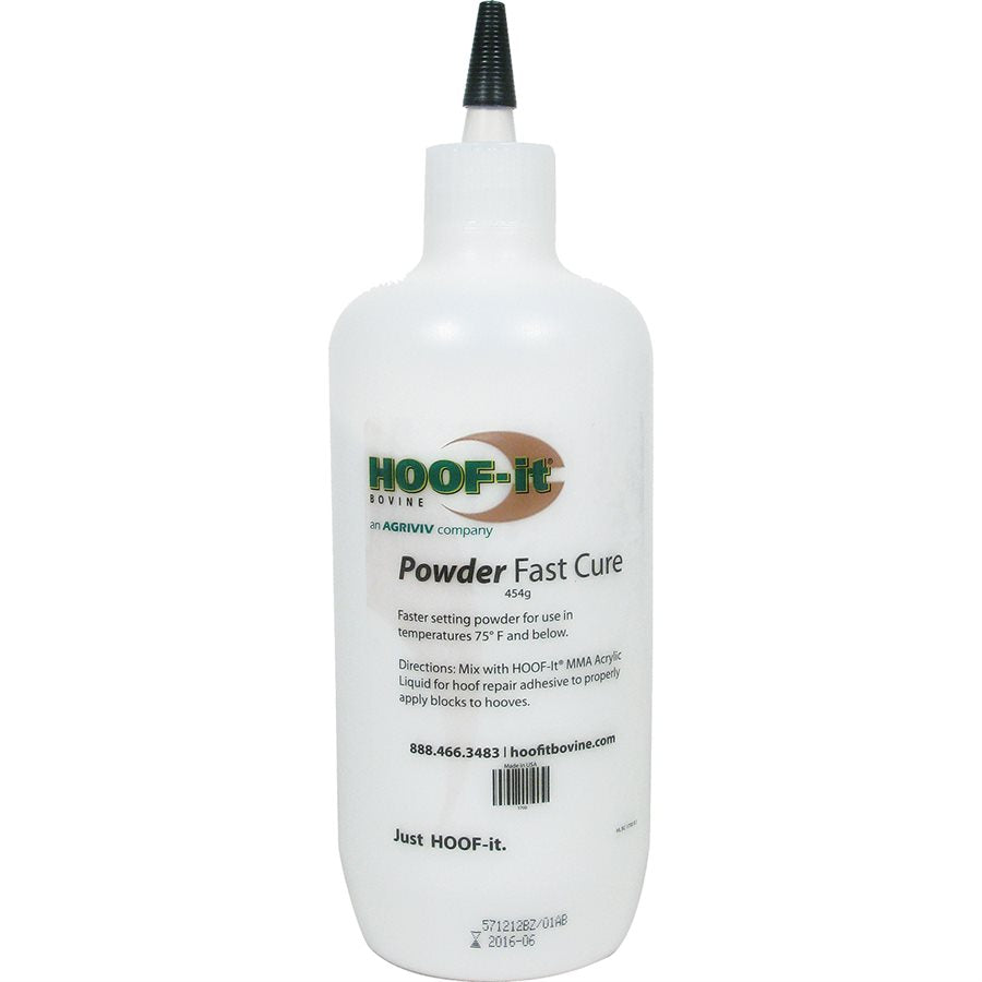 Acrylic Powder bottles mix with HOOF-It® MMA Acrylic Liquid for hoof repair acrylic to properly glue/apply hoof blocks/boots to your dairy cattle. Fast Cure: faster setting powder for use in temperatures 70 degrees F and below.
