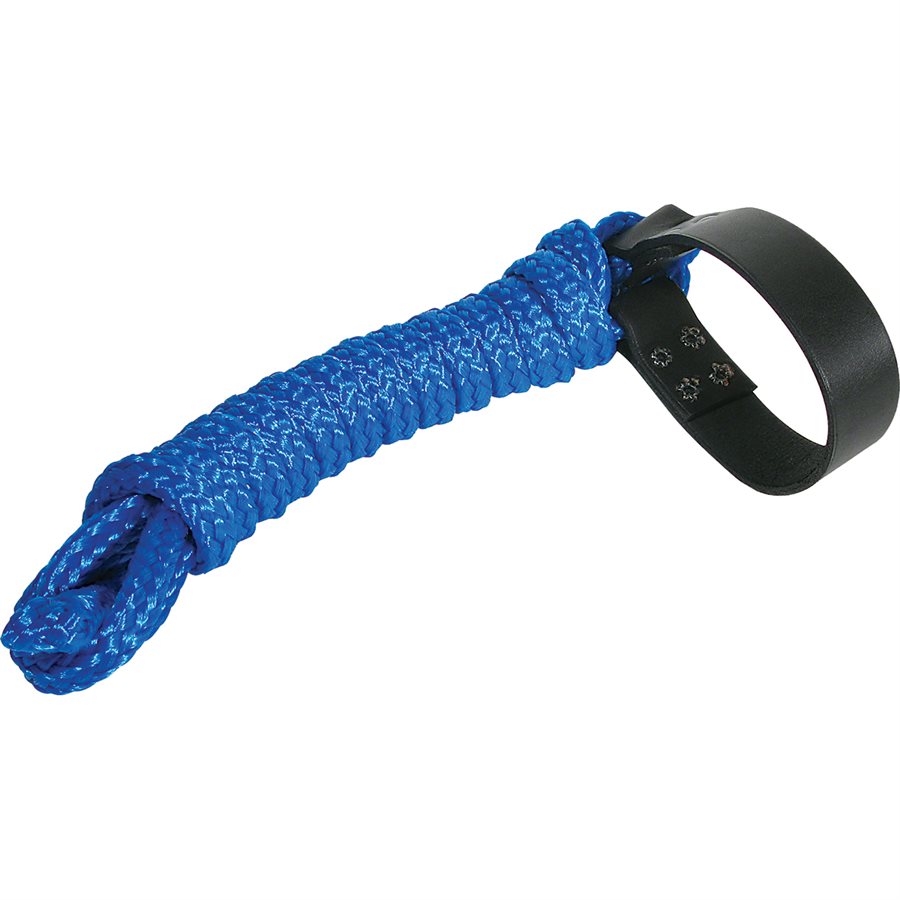 Easily adjustable 1/2" soft poly rope halter with leather nose piece and 10' long lead.