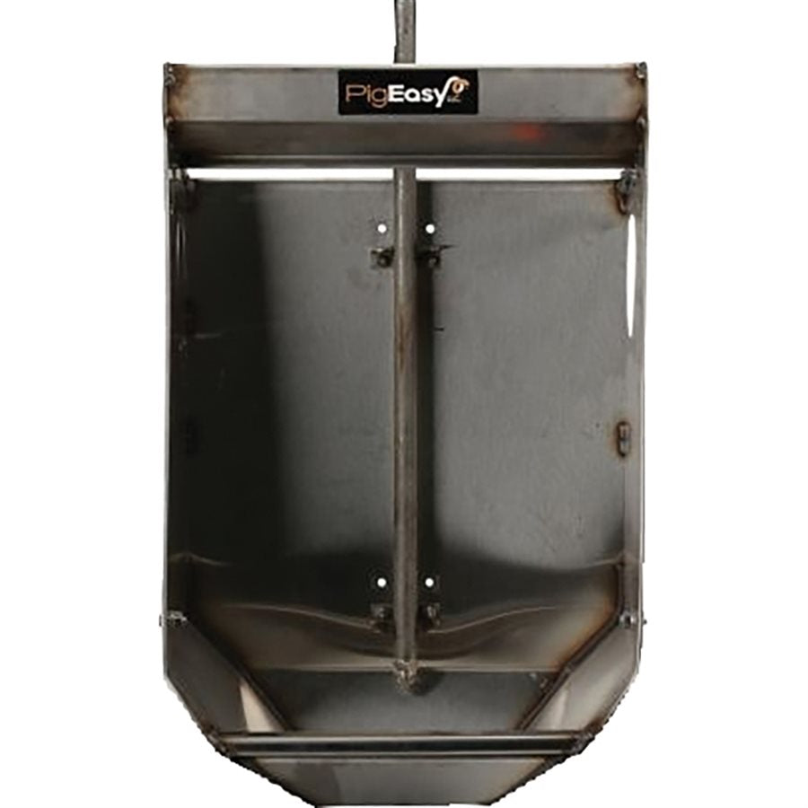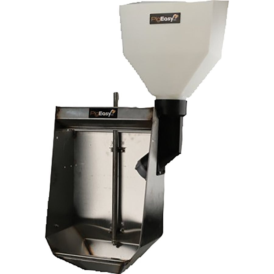 The PigEasy Sow Feeder is a fresh approach to ad-lib feeding in farrowing for sow farms. Along with the MealMeter feed dispenser, the Sow Feeder’s exclusive design achieves maximum intake while eliminating feed waste. By serving as both her feed and water bowl, the Sow Feeder acts as a “dispensing regulator” for the MealMeter so she does not over-fill the bowl and cleans up her feed with every drink. Water pipe and nipple is included. Hopper excluded.