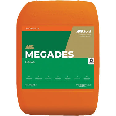 MS Megades Para™ is a special disinfectant for combating bacteria (excluding mycobacteria and bacterial spores), yeasts and fungi on surfaces, materials and tools in animal enclosures and the accompanying spaces and eggs of whipworms Ascaris suum on surfaces in empty pigsties and associated spaces. Limited exclusively to use as a means of combating: Bacteria (excl. Mycobacteria and bacterial spores), yeasts, and moulds on surfaces, equipment, and tools in animal housing and its associated spaces; Eggs of the Ascaris suum ringworms on surfaces in empty animal housing and the associated spaces of pigs; For the application of this agent on the farm, the following risk-limiting measure is important: to prevent decreased function of an Individual Sewage Treatment (IST) system, the excrement remnants that the agent contains must be disposed of in the manure cellar or in the sewers connected to the sewage treatment facility. 2.0% dilution (2:100).