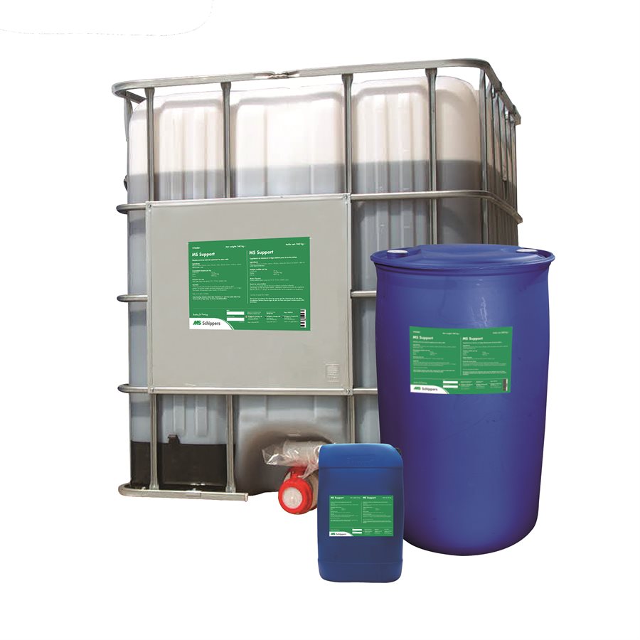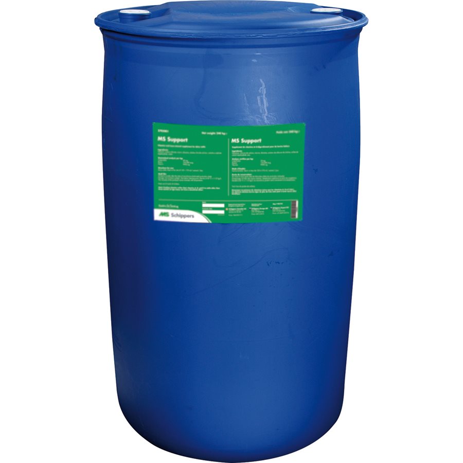 MS Support™ is a feed supplement formulated with 100% plant-based purified glycerol, niacin, biotin and choline to support optimal energy metabolism during the transition period around calving. CFIA certified, MS Support™ offers a tasty and reliable alternative to propylene glycol. Niacin contributes to normal energy metabolism and helps release energy from feed, while choline supports healthy homocysteine metabolism. The product is also suitable for sheep but not for dairy goats. The recommended dosage is 125 to 175 ml per animal per day, starting three weeks before calving and continuing for seven to ten weeks after calving. For best results, MS Support™ should be individually dosed. During the dry period, it can be offered through the feed, either mixed in a wagon or top-dressed onto roughage. After calving, it can be administered via a mixer wagon for fresh cow groups, or individually through automated dosing systems such as milking robots.