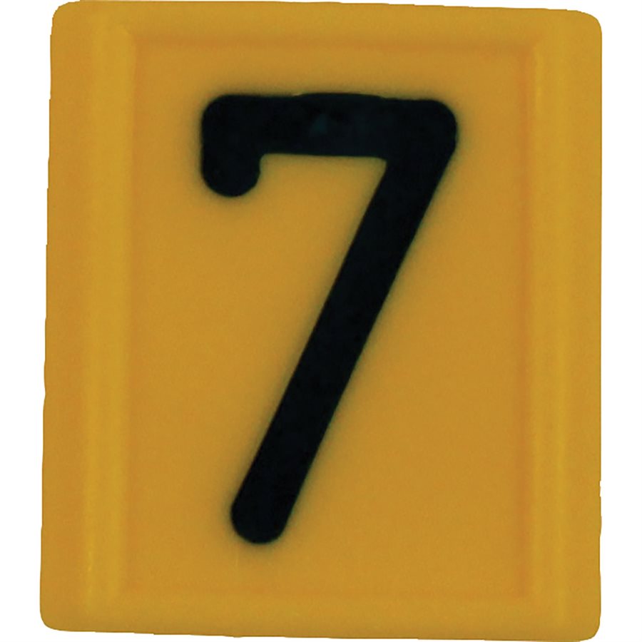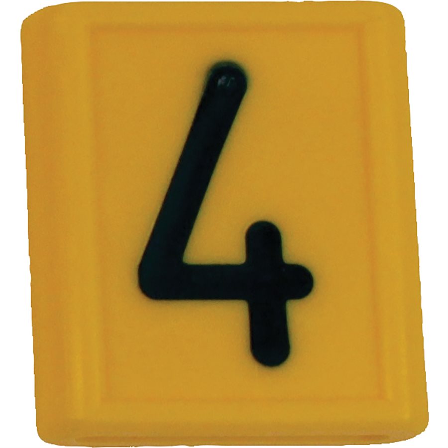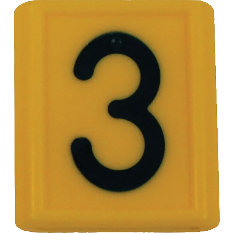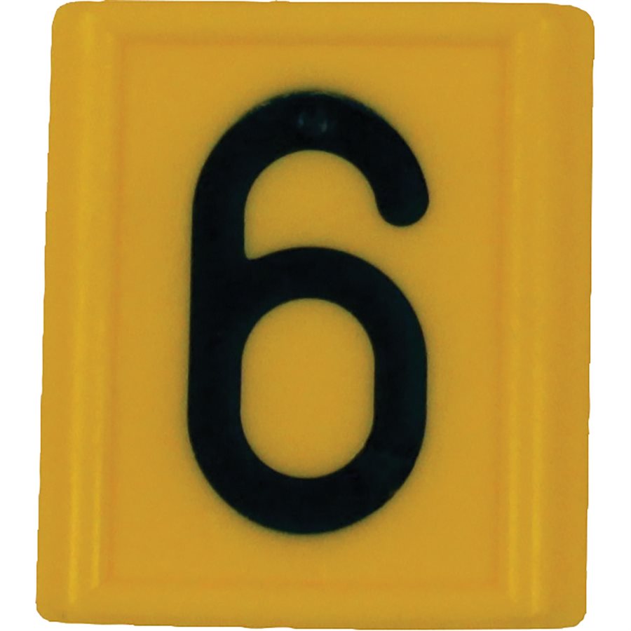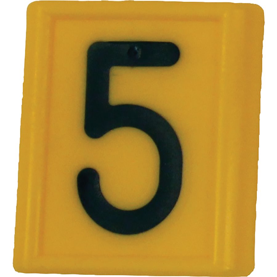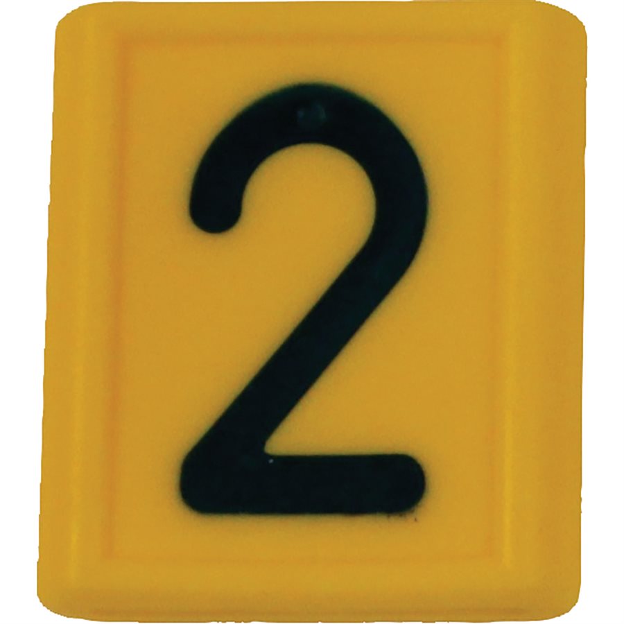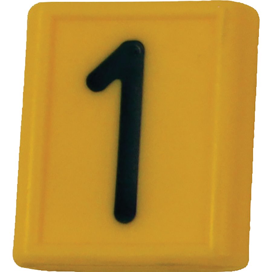 Yellow plastic neck strap ID sleeves slip onto a nylon neck strap (694701) for cattle identification. Available in numerals 0 through 9, number sleeves will fit most neck straps that are 1-5/8" wide by about 1/8" thick. Please specify number when ordering. (Ex. 694704-1 is #1; 694704-2 is #2...)