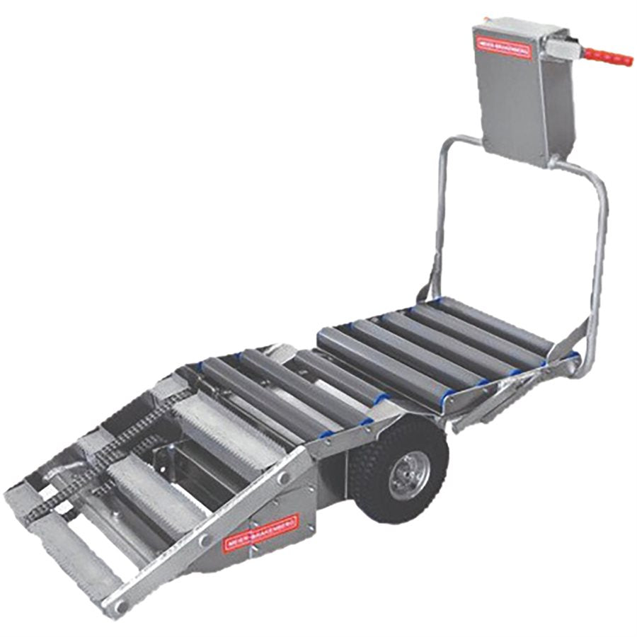 Porky’s Pick Up is a self-propelled device for the transport of carcasses. The user takes Porky’s Pick Up cadaver trolley directly to the animal inside the pen. The electrically driven pick-up rollers pull the animal onto the vehicle at the touch of a button. At the carcass disposal site the animal carcass is unloaded by actuating the backwards rotating rollers. There is no need to touch the animal throughout the entire process and all of it without any physical strain. The carcass trolley’s chassis is splash-proof and made of corrosion resistant aluminium. Therefore it is easy to clean the device. Porky's Pick up is equipped with 26 cm pneumatic tires, turns around its own axis and can even surmount stairs. The width of only 56 cm makes it suitable for use in small pens and narrow passages. Operation of the device is simple and intuitive. After turning on the main switch it takes only two buttons to operate Porky's Pick Up. Travel speed is infinitely variable and allows for very smooth starting and stopping.Porky’s Pick Up XL is designed for transport of sows with a weight of up to 300 kgs. The animal can be loaded in a very ergonomic way by one person only.The design makes it possible to extend the folding table so that the animal lies completely on the device for transport without touching the ground. Maintenance requirements are minimal. Battery should be fully charged at least once every month. Chain should be greased every 3 months and unit should be stored above 5 degrees C.