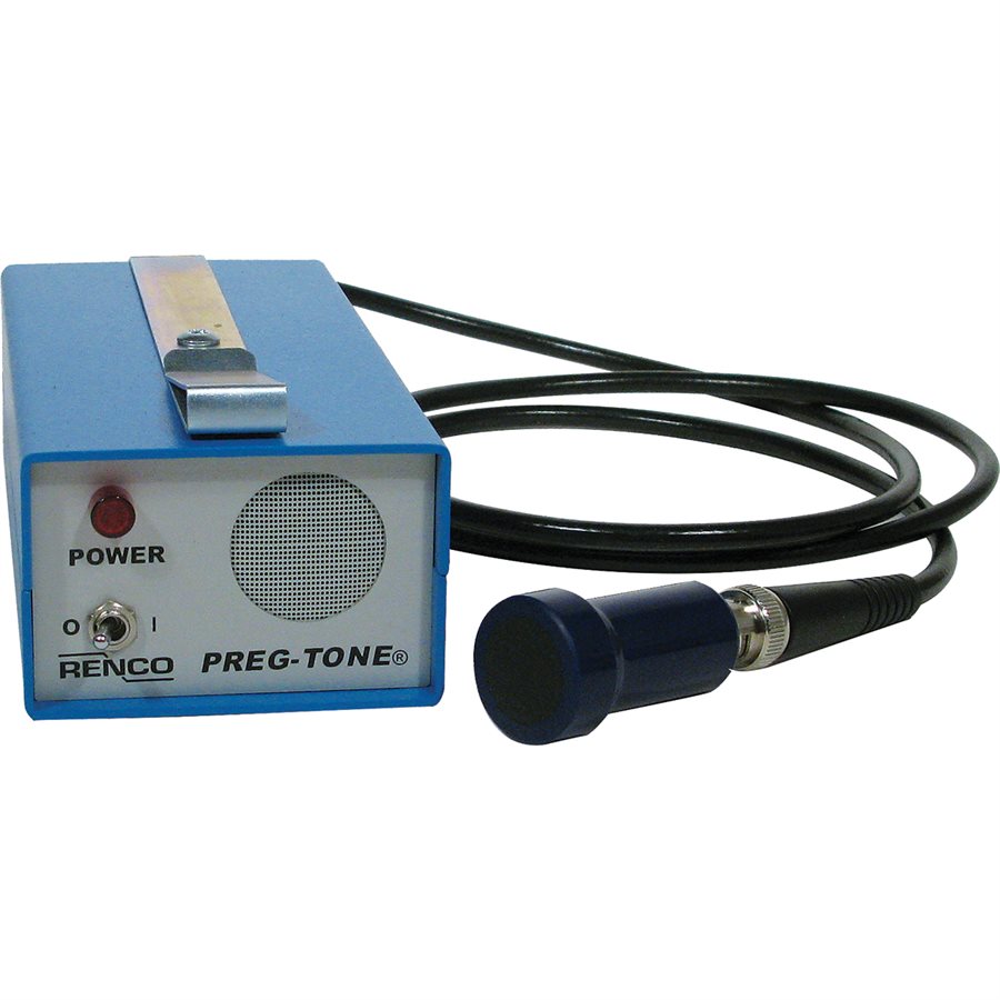 The Preg-Tone uses high frequency sound waves called ultrasound to detect amniotic fluid present during pregnancy. When the fluid is detected, the instrument produces a loud continuous tone. Testing may begin as early as 18 days with swine, and open sows can be diagnosed as early as 30 days. Normal testing time for sows and gilts is 30-73 days. The Preg-Tone can be used for detecting pregnancy in gilts, sows, ewes, goats and certain other medium sized mammals. Rugged, all-metal construction is small enough to slip into your pocket. Includes battery charger and rechargeable NiCad batteries that provide many hours of testing from one charge. Comes with a 5ft cable.