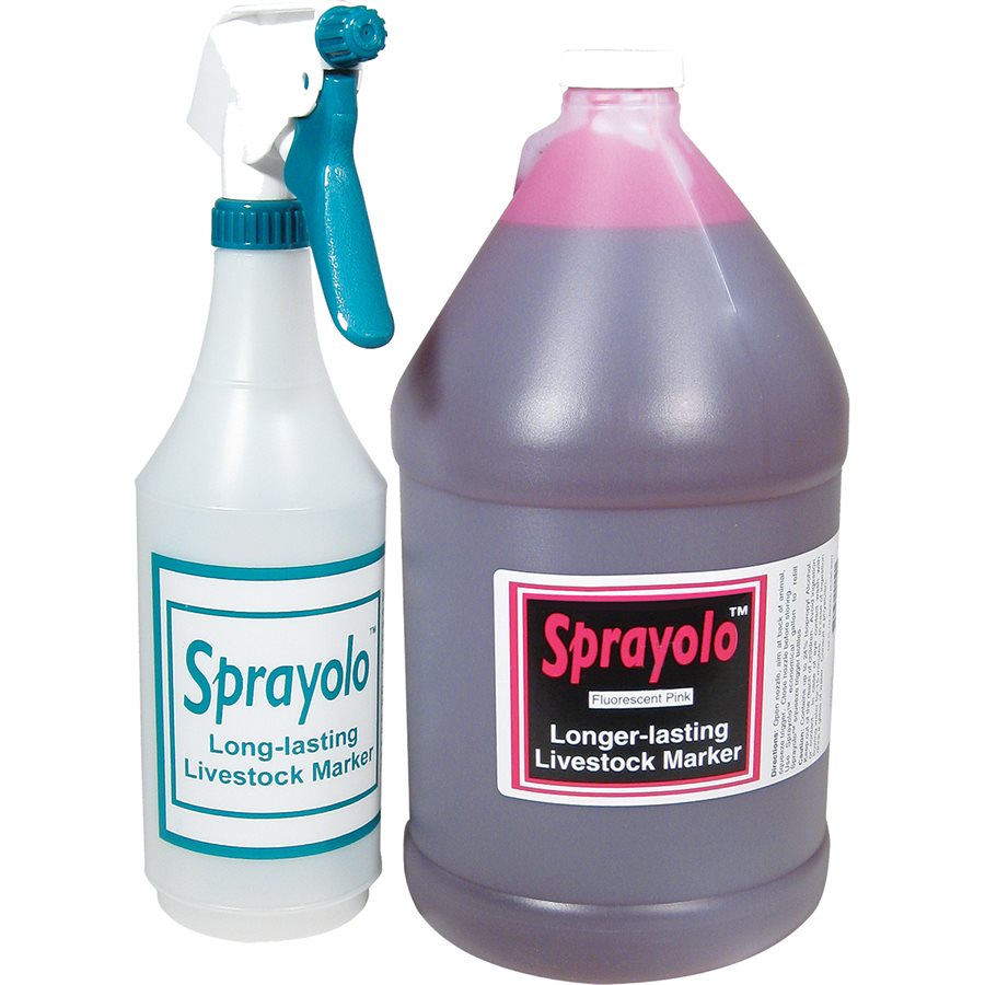 A liquid ink in a 24% isopropyl alcohol based formula that resists freezing. The 3.78L Sprayolo refill jug makes an economical livestock marking system. The pink colour lasts up to 10 days.