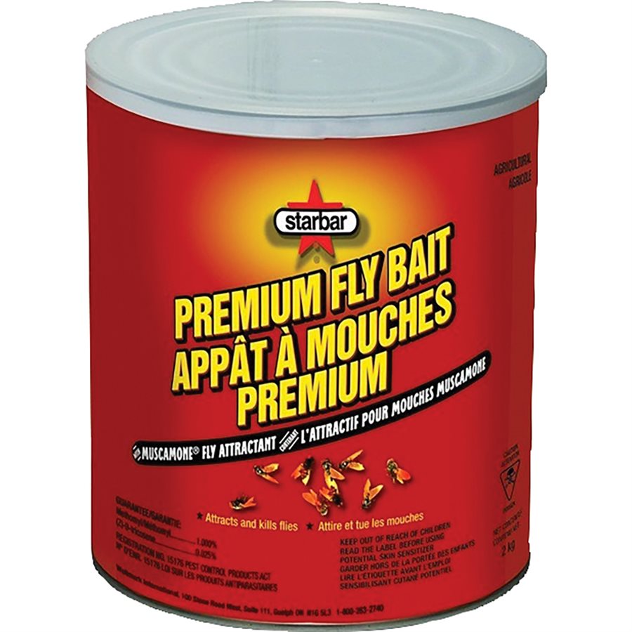 Starbar Premium Fly Bait is an improved fly bait formula containing Muscamone fly attractant which encourages both male and female flies to remain in the treated area, thus feeding on the bait. Bait should be scattered over specified fly feeding surfaces daily or as needed to provide initial knockdown and reduction of fly populations. 1.0% Methonyl/0.025% z-9-tricosene. GROUP 1 INSECTICIDE.
