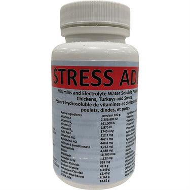 To maintain healthy electrolyte and vitamin levels in chickens, turkeys, and swine during periods of stress due to environmental heat or handling.