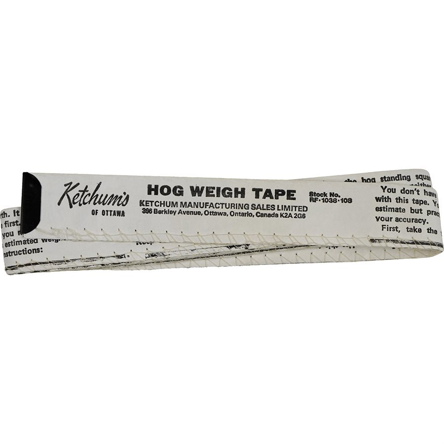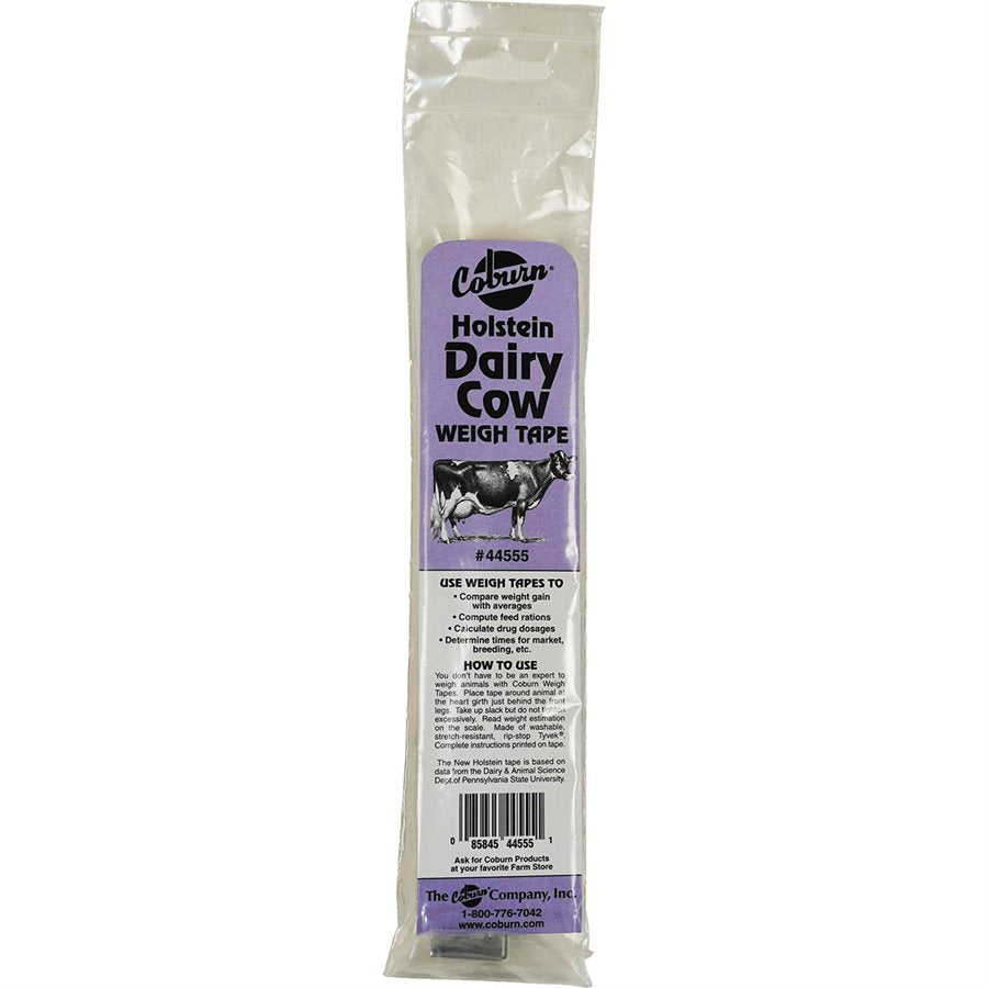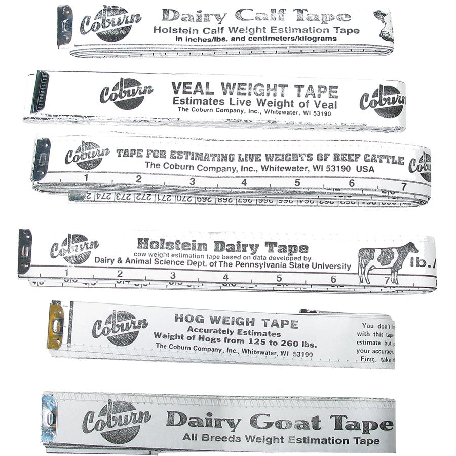 Made of Tyvek material that will not stretch, tear, mildew or rot. Measurement in imperial increments. Holstein Calf reads weights from newborn to approximately 12 weeks or 282 lbs./ 126 kgs. Veal reads weights from 65 lbs. to 458 lbs. Beef reads weights up to 1600 lbs./ 734 kgs. Holstein Dairy Cow reads weights from 77 lbs./34 kgs to 2125 lbs./985 kgs. Hog estimates weights from 125 lbs to 260 lbs. Goat reads weights up to 195 lbs./ 88 kgs.